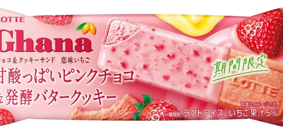 1月6日(火)より全国で、発酵バターを使用したこだわりのピンク色の香ばしいクッキーと苺チップ入りチョコ、苺アイスの味わいがしっかりと楽しめる「ガーナチョコ&クッキーサンド 恋味いちご」が発売されます✨