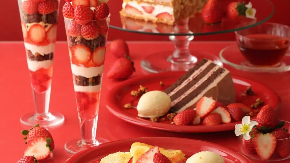 1月15日(木)よりキハチ カフェでは、甘酸っぱい苺スイーツが揃う「ストロベリーフェア」を開催し、大人気のナポレオンパイをパフェに仕立てた「あまおう苺の贅沢パフェ」などが提供されます✨