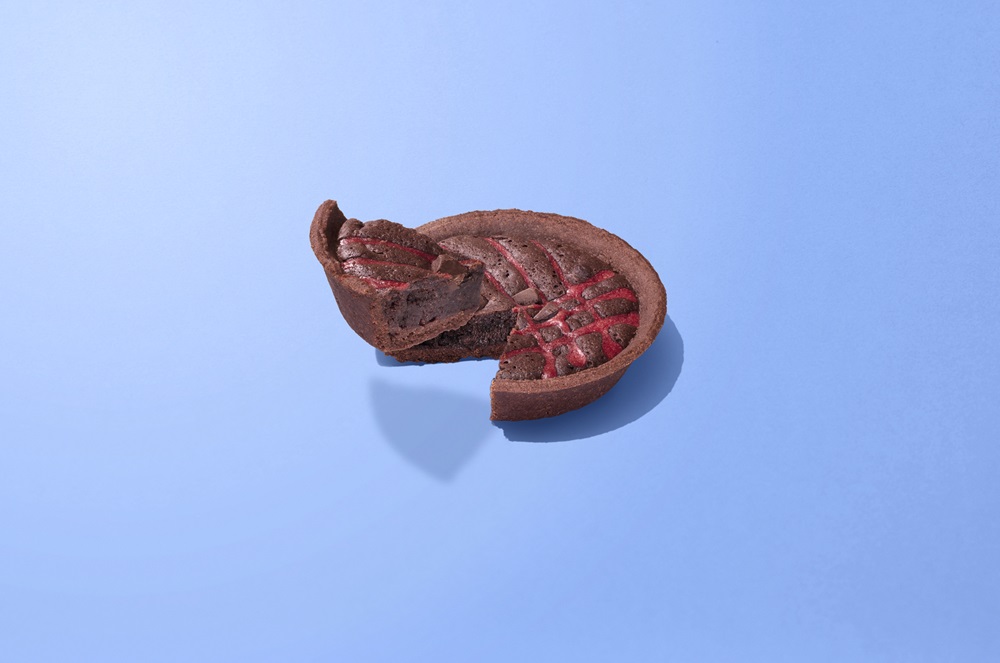 …チョコタルトに、ラズベリー香るチョコ生地とキューブチョコを加え、甘酸っぱいラズベリーソースをかけて焼き上げたタルトです。チョコの濃厚さとラズベリーの甘酸っぱい爽やかさが加わった、見た目も味わいも楽しい一品です。