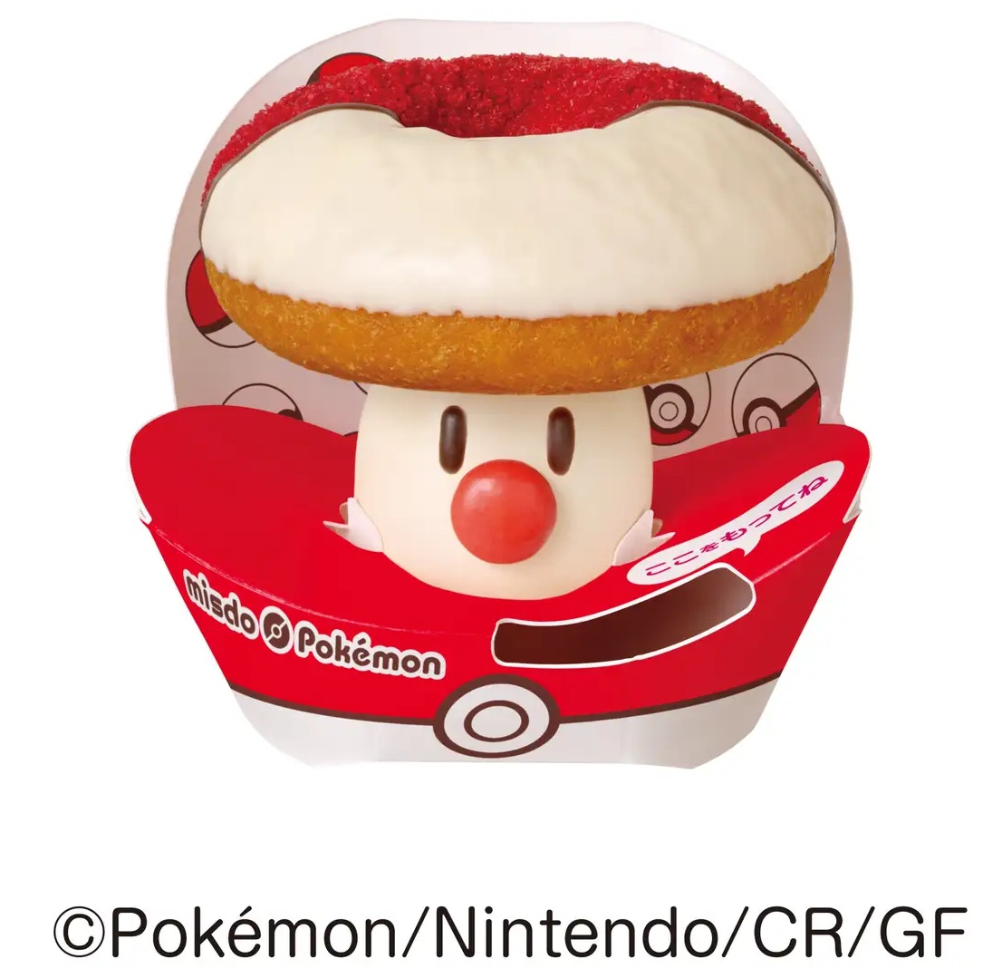 …しっとり食感のケーキドーナツ生地にホワイトチョコをコーティングして、カスタードクリームとホイップクリームをサンド。ビリリダマがデザインされたスリーブに入ったドーナツです。