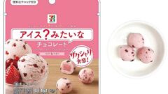 …ポン・デ・リング生地をストロベリーチョコでコーティングし、カラーシュガーをトッピングしています。