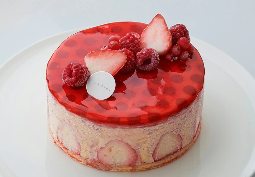 フランボワーズシャンティと、グリオットチェリーを飾り付けた、美しいビジュアルのXmasケーキです。甘酸っぱいフランボワーズとミルクチョコレートが調和する、奥深い味わいのケーキです。