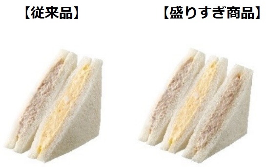 …従来品「ツナたまごサンド」と比較して、ツナサラダを約50%増やしました。たまごサラダ、ツナサラダを、ふんわり食感の食パンで挟んだサンドイッチです。