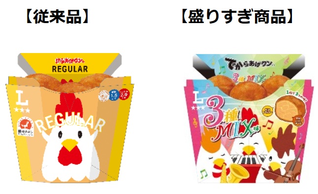 …従来品「からあげクンレギュラー(5個入)」と比較して、総重量を約50%増やしました。 1粒で、からあげクンの定番フレーバーの「レギュラー」、「レッド」、「北海道チーズ」の3つの味が楽しめます。