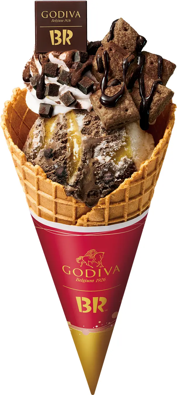 ③「- ゴディバ監修 -プレミアムショコラサンデー(ワッフルコーン)950円(税込)※イートイン限定」