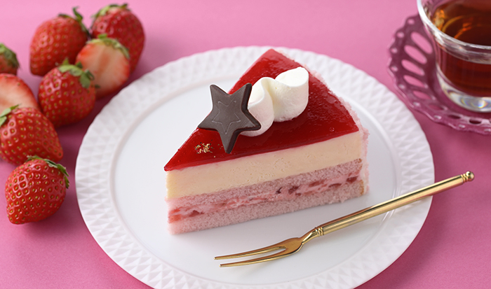 …苺風味スポンジに苺ゼリー入り苺クリーム、口あたりなめらかなチーズムースを重ね、ラズベリーグラサージュで仕上げました。チーズのまろやかさと、甘ずっぱい苺の味わいが相性抜群のレアチーズケーキです。苺の香りと味わいが口いっぱいに広がります。