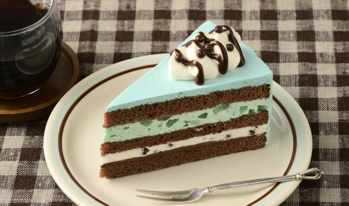 …ミントの爽快感とチョコの味わいを存分に楽しめる、”チョコミン党”も納得のケーキです。チョコスポンジでミントホワイトチョコクリームと、ミントガナッシュをバランスよくサンド。ミントホワイトチョコクリームにはミントが強めのゼリーを混ぜ込み、ホイップクリームには食感のアクセントにパフチョコを忍ばせて、さっぱり食べやすく仕上がっています。