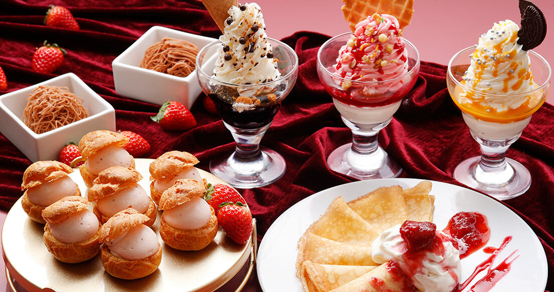 いちごムース、いちごタルト、いちごパイ、あまおうマカロン
