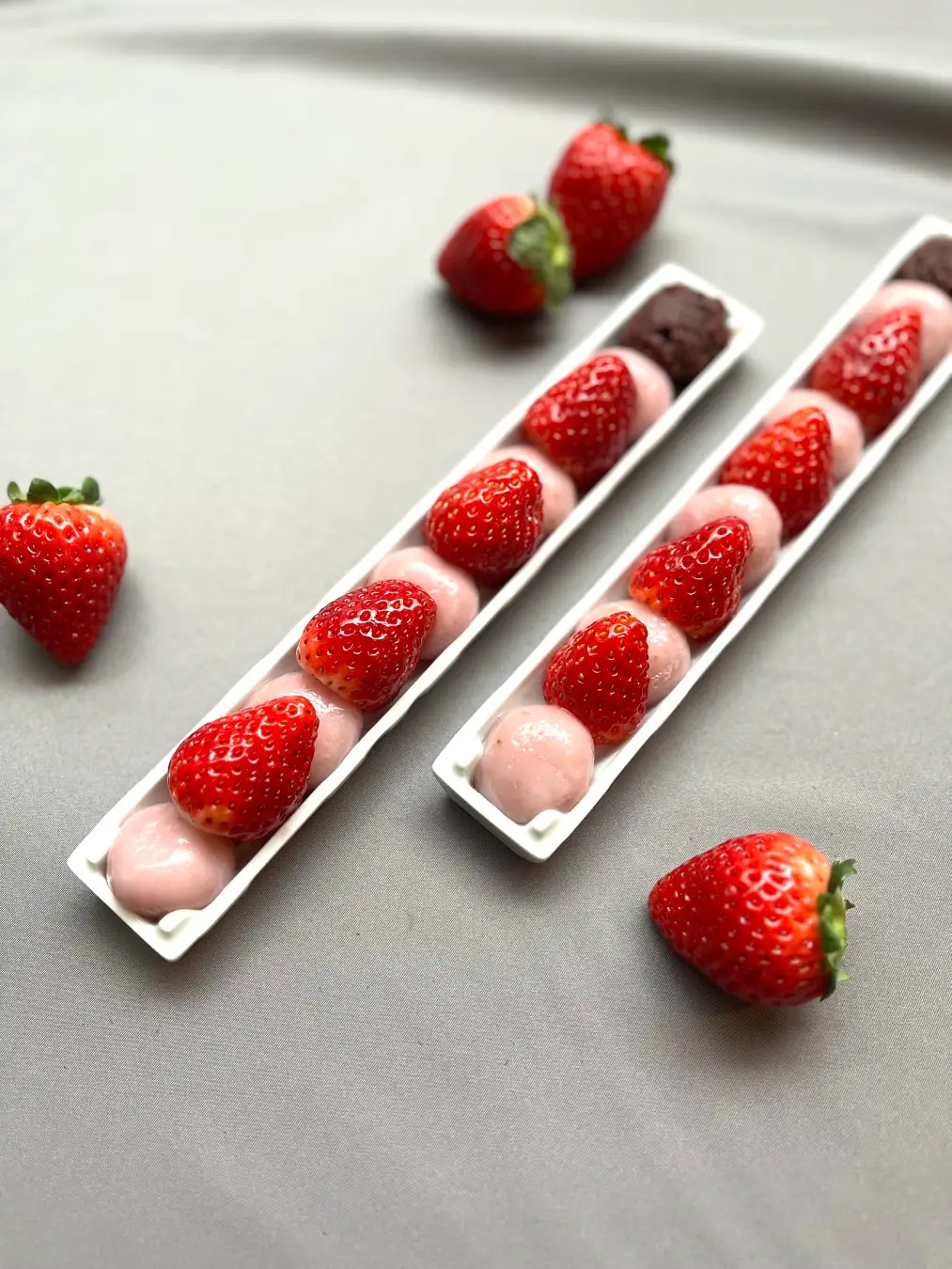 いちごを練り込んでピンク色に仕上げた白玉は、茹でたてあつあつでご提供。いちごと白玉がずらっと並んだ姿が特徴です。小麦、乳製品アレルギーの方にも安心して食べることが出来ます。初出店です。