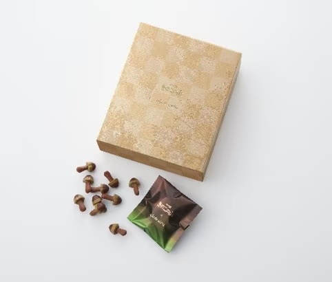 …黒トリュフにポルチーニ茸。贅沢に本物のきのこを味わえる、まさに本格派「きのこの山」です。黒トリュフの芳醇な香り引き立つ2層のガナッシュをビターチョコレートで包み込み、ポルチーニ茸の濃厚な香りと旨みを生かしたクッキーを合わせています。チョコレートのカカオ感を生かしながらも、2種のきのこが香り立つようこだわり抜いた一品です。じっくりと味わっていただけるようビッグサイズにアレンジしています。( ※トリュフ90%使用(きのこに占める割合) )