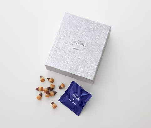 …チョコレート部分は2層構造で、「たけのこの里」ならではのカカオ香るチョコレートと、ヘーゼルプラリネに柚子を合わせたチョコレートを使用しています。チョコレートとクッキー部分にはロレーヌ岩塩も配合し、クセになる味わいです。