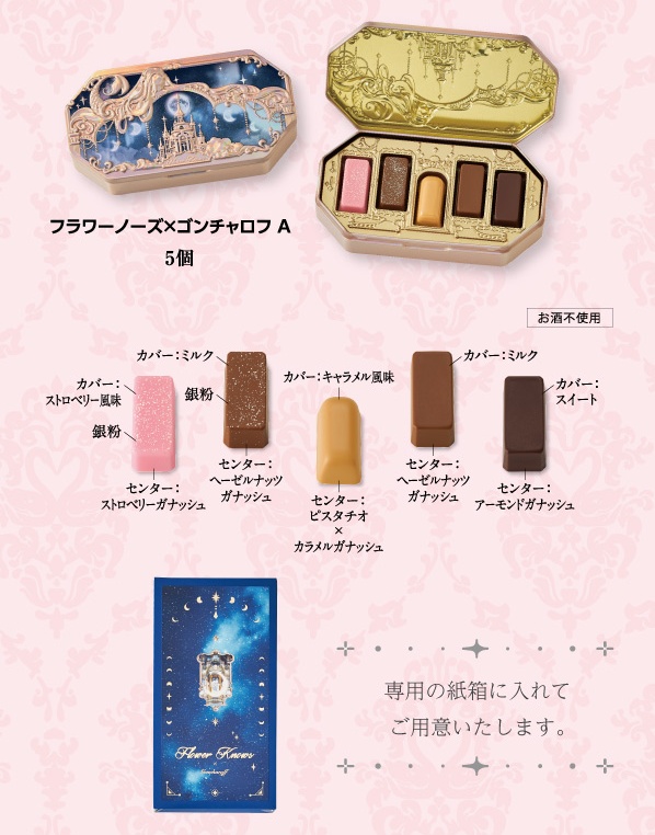 ①「フラワーノーズ×ゴンチャロフ A 5個 バレンタイン2026 チョコレート」1,944円(税込)