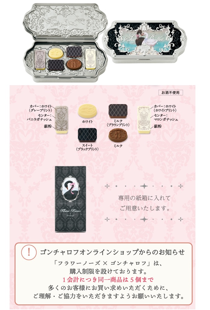 1月5日(月)より順次、コスメブランド「フラワーノーズ」とゴンチャロフがコラボし、フラワーノーズの人気シリーズ「月光人魚」・「スワンバレエ」の世界観を融合させた「バレンタインチョコ2026」が新発売されます✨