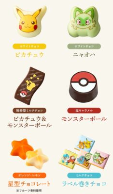 ピカチュウ、イーブイ、モンスターボール、ニャハオ、ポッチャマ、モクロー、ヤドンなどがデザインされ、3年連続ギフト大賞受賞中の、バレンタインに喜ばれること間違いなしのスイーツです!