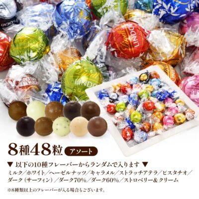①1粒約150円のリンツリンドールのトリュフチョコレート8種48個が数量限定で3480円(送料込み)の大特価で販売されました✨お得に美味しい高級チョコを安く配りたい人におすすめです!
