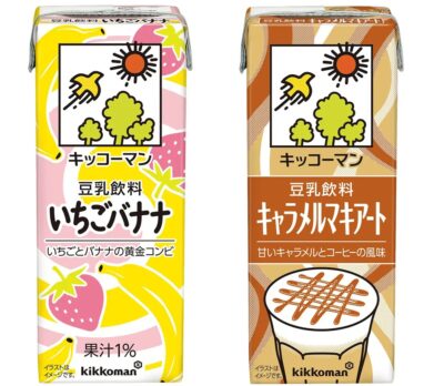 商品名:「豆乳飲料 いちごバナナ」、「豆乳飲料 キャラメルマキアート」