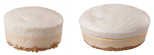 …従来品の「ふわ濃チーズケーキ」と比較して、総重量を約50%増やしました。北海道産チーズを使用した濃厚で後味すっきりなふわふわチーズと、オーストラリア産クリームチーズ2種を使用した香り高い2層のチーズを楽しめます。