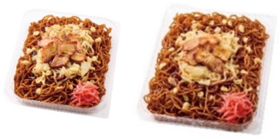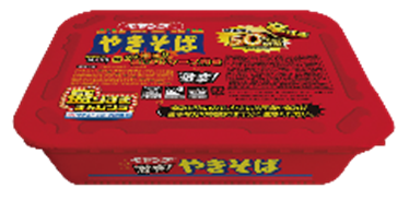 …従来品の「大盛ソース焼そば」と比較して、麺重量を約50%増やしました。ジューシーでコクのある甘めのソースで炒めました。