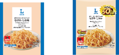 …従来品の「ポテトリングスナック なげわ しお味 62g」と比較して、内容量を約50%増やしました。サクっと軽い食感で赤穂の塩を使用したシンプルな味わいです。