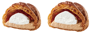 …従来品の「大きなチョコシュー」と比較して、チョコクリームとホイップクリームの量を約50%増やしました。香りのよいチョコクリームと、ホイップクリームの2層仕立てのシュークリームです。
