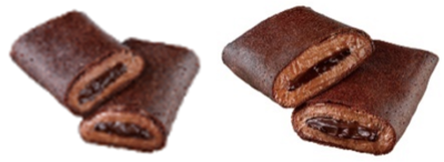 …従来品の「くちどけショコラクレープ」と比較して、チョコホイップとチョコソースの量を約50%増やしました。北海道産生クリームとチョコを合わせたチョコホイップと、カカオ分約72%のチョコレートを使用したチョコソースを包んだクレープです。