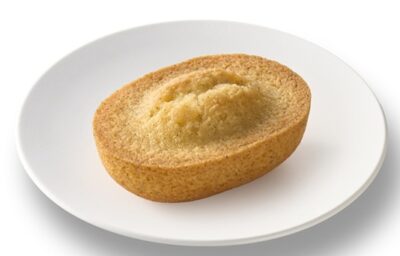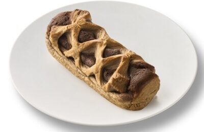 …ココア入りヘーゼルナッツ風味ビスケット生地のメロンパンに、ヘーゼルナッツホイップとヘーゼルナッツチョコクリームをサンドしました。