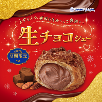 2月1日(日)よりビアードパパから、まるで生チョコそのもののような濃厚でなめらかな口どけのショコラクリームと、香ばしいクラッシュアーモンドを乗せたサクサクのパイシュー生地が合わさった「生チョコシュー」が再発売されます✨