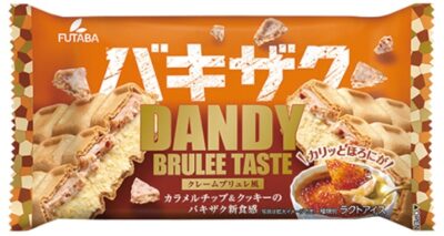 2月3日(火)よりファミリーマートから、「バキザク」食感が特徴のフタバのモナカアイス「ダンディー」をクレームブリュレ風にし、カラメルチップでキャラメリゼの食感を表現した「ダンディークレームブリュレ風」が新発売されます✨