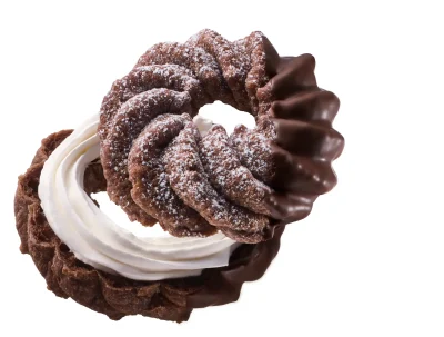 …ミルクチョコ風味のふわっと軽いショコラフレンチ生地に、ホイップクリームをサンドし、チョコレートをコーティングしています。