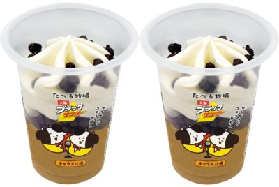 …「大阪ブラックサンダー」 のコテコテな味わいをイメージした商品です。たべる牧場のミルクアイスに、クッキーを混ぜ込んだキャラメルアイスと天面と中間層にココアクッキーを組み合わせ、ザクザク食感が楽しめる商品に仕上げています。