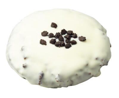 …北海道限定の白いブラックサンダーをイメージし、北海道牛乳を使用したチョコクッキーです。チョコチップとココアビスケット入りのザクザク食感のクッキーに、ホワイトチョコをかけ、ココアビスケットをトッピングしています。
