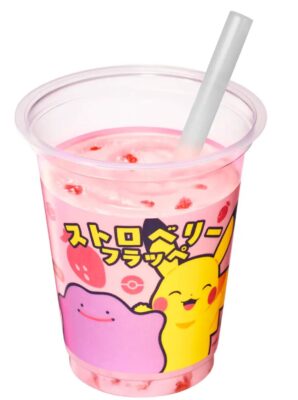 …メタモンとピカチュウをパッケージにデザインしたストロベリー味のフラッペです。いちご果肉とゼリーを入れ、甘酸っぱいいちごの酸味と食感で最後の一口までおいしく味わえます。こだわりの詰まったかき氷、果肉ソース、ゼリーと、ミルクが絶妙にマッチした一品に仕上がっています。