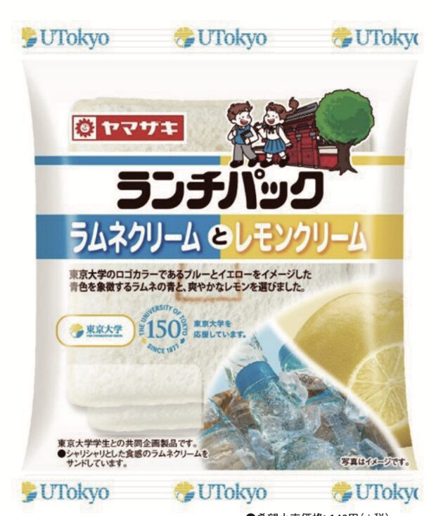 5月初め~6月末まで東大生協各店舗、関東全域のローソンにて、東京大学と山崎製パン株式会社との共同企画により開発された、東京大学のロゴカラーをイメージした新商品「ランチパック(ラムネクリームとレモンクリーム)」が発売されます✨